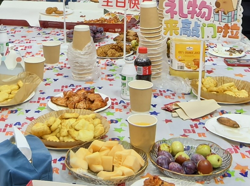 各式各樣的美食琳瑯滿目,誘人的香氣在房間內(nèi)彌漫開來,正如我們心中對每一位壽星那份暖暖的、持續(xù)升溫的祝福。
